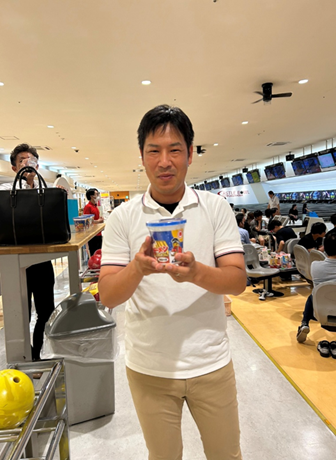 ストライク賞としてカップ麺など50個を用意していましたが、皆さんがストライクを連発するので、あっという間になくなってしまい、急遽景品で出すはずだったものを追加しました!!